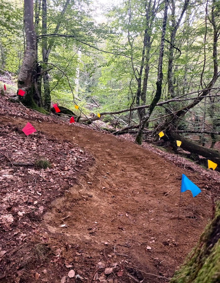 Diseño y construcción de varios senderos para el destino Basaburua MTB, con un enfoque sostenible y de integración con el entorno.